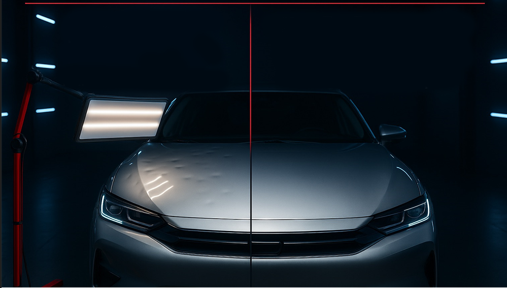 Rad pod profesionalnim PDR lampama predstavlja ključni deo obuke i samog procesa izvlačenja udubljenja. Ove specijalizovane lampe emituju snažno i ujednačeno svetlo koje stvara jasno definisane senke i refleksije na površini automobila. Upravo zahvaljujući tome, majstor može precizno da uoči i najmanje neravnine i udubljenja, što je od suštinske važnosti za kvalitetnu i efikasnu popravku bez oštećenja boje. Profesionalne lampe omogućavaju bolje sagledavanje oštećenja iz različitih uglova, što pomaže da se rad obavi brzo, precizno i sa maksimalnom pažnjom. Obuka pod ovim lampama omogućava polaznicima da nauče kako pravilno da koriste svetlo za detaljnu analizu i korekciju karoserije, čime stiču veštine potrebne za vrhunski PDR rad.